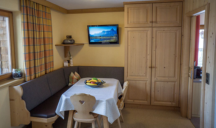 Ankommen und Wohlfühlen. Unsere Zimmer und Ferienwohnungen im typischen Tiroler Landhausstil sind liebevoll mit heimischen Naturmöbeln und viel Holz eingerichtet. Auf Wunsch können die Zimmer ohne Frühstück gebucht werden. Für die Ferienwohnungen stellen wir Ihnen gerne ein Brötchenservice zur Verfügung. Falls Sie ein Kinderreisebett und Kinderhochstuhl benötigen, lassen Sie es uns wissen.